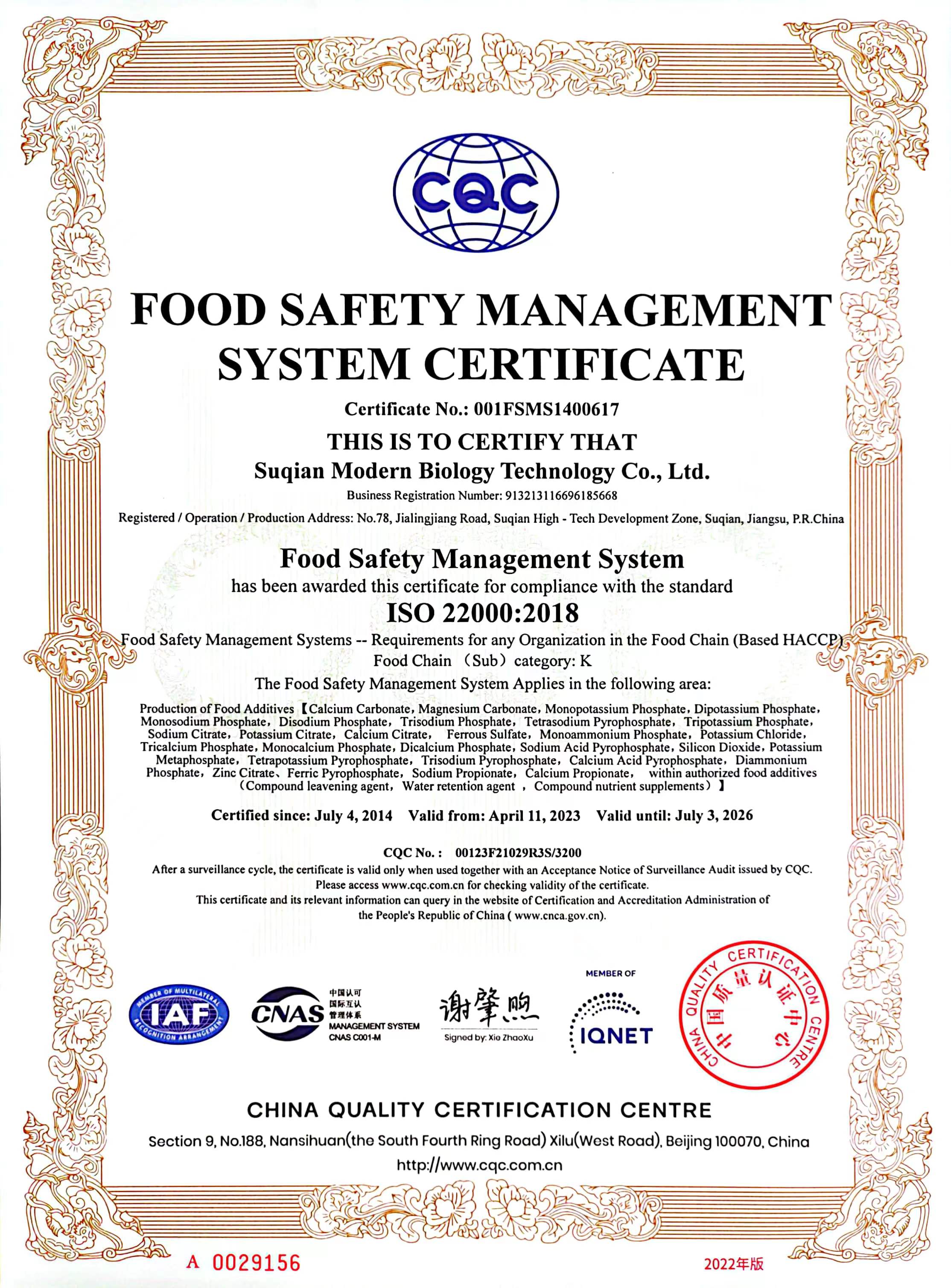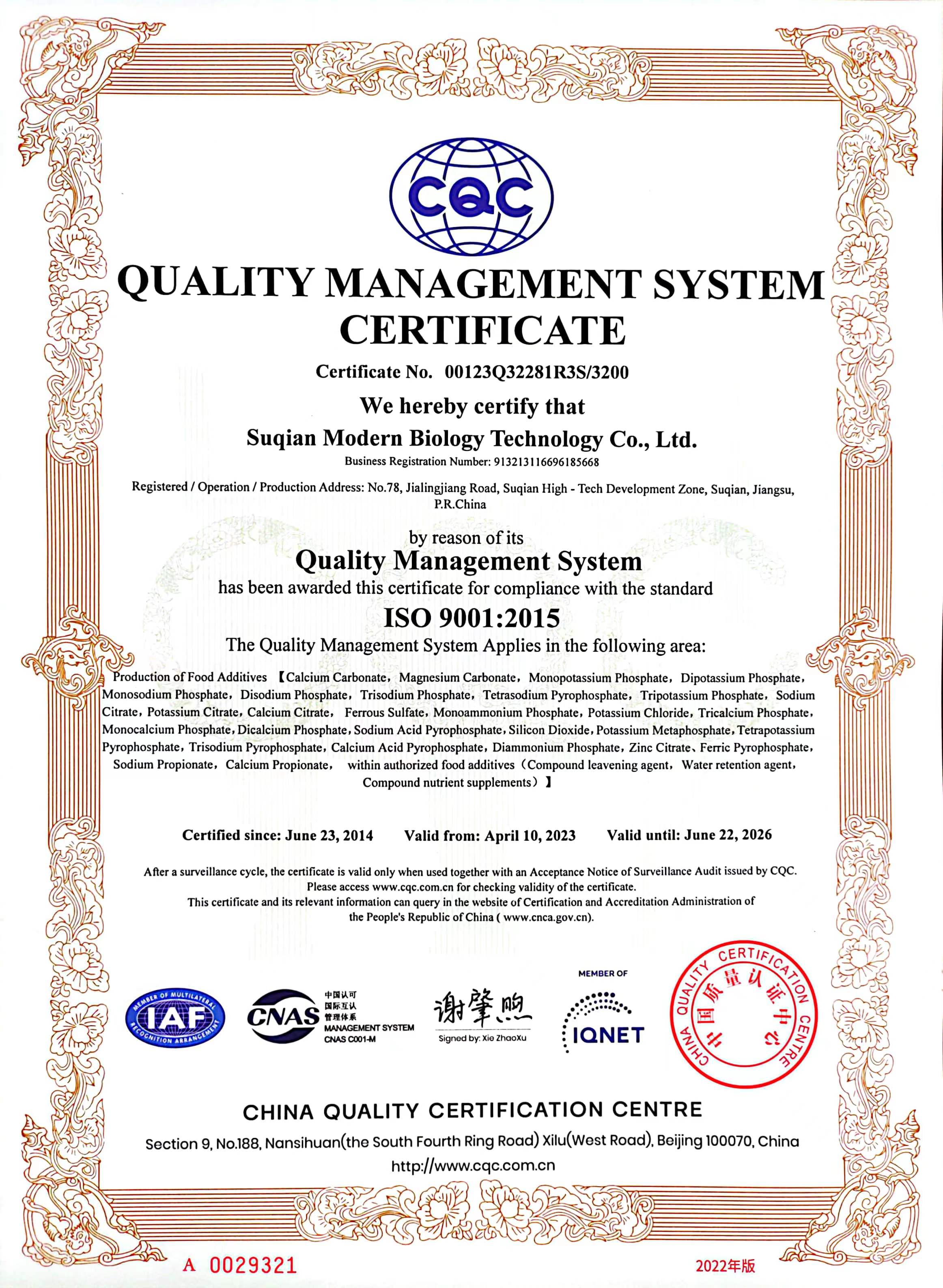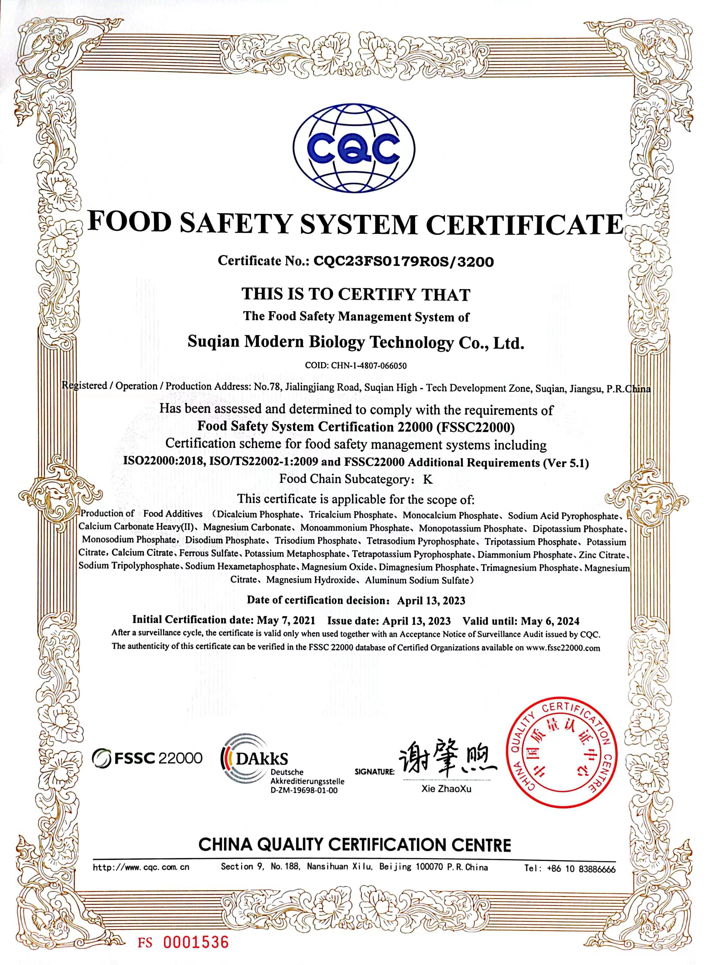 江蘇曉春新材料有限公司位于江蘇省宿遷市,在過去21年里一直是中國領先的鈣鎂基的藥物、食品和飼料原料生產商。我們的年生產能力為2萬噸,為20多個國家的380多個客戶提供制藥、食品和飼料配料解決方案。依托于“宿遷市現代生物科技股份有限公司”,我公司主要銷售磷酸鈣鹽、磷酸鎂鹽、磷酸鈉鹽、磷酸鉀鹽、磷酸銨鹽、復合磷酸鹽、檸檬酸鹽及鐵鹽、二氧化硅等多種食品添加劑。我們視質量為企業的生命,并致力于持續不斷提升...